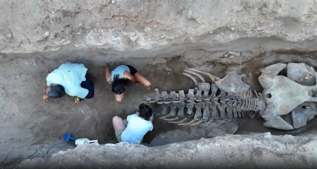ဝေလငါးသေတစ်ကောင်ကို မြေကြီးထဲမှ တူးဖော်လေ့လာမှု