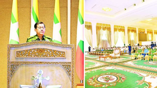 နိုင်ငံတော်စီမံအုပ်ချုပ်ရေးကောင်စီဥက္ကဋ္ဌ၊ နိုင်ငံတော်ဝန်ကြီးချုပ် ဗိုလ်ချုပ်မှူးကြီး မင်းအောင်လှိုင် ပြည်ထောင်စု သမ္မတမြန်မာနိုင်ငံတော် နိုင်ငံတော်စီမံအုပ်ချုပ်ရေးကောင်စီ ဂုဏ်ပြုတွေ့ဆုံပွဲ အခမ်းအနားသို့ တက်ရောက်အမှာစကားပြောကြား